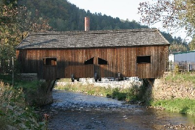 Überdachte Holzbrücke im Schwarzenberger Stadtteil Neuwelt